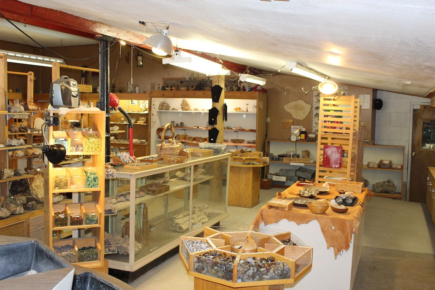 Enter our Gallery of Stone Rock shop at the end of your tour. We have many things you can view and purchase. Petrified wood from South Dakota and other areas, agates, crystals, minerals, polished rocks, Petrified wood book ends, fossils, and more. We have a working Lapidary attached to the rock shop where we cut and polish many beautiful pieces.